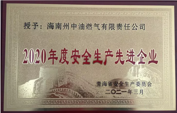 2020年,海南州中油燃氣有限責任公司在上級政府主管單位及集團公司的正確領導下,緊緊圍繞“安全第一、預防為主、綜合治理”的安全生產方針,著力提升公司安全管理水平,不斷夯實安全生產基礎,嚴守安全底線,推進“一崗雙責”“三個必須”安全工作,經省安委會考核,被青海省安全生產委員會授予“2020年度安全生產先進企業”榮譽稱號。