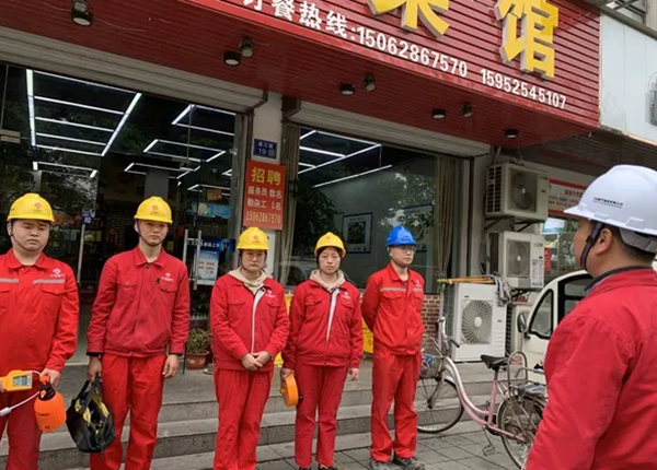 演練模擬商業用戶戶內燃氣管道突發泄漏,客服人員在接到報警電話后,迅速通知巡檢和維搶人員。相關人員到達場后,對現場分別進行了警戒、檢測、放空、維修等作業,維修完畢后恢復供氣。