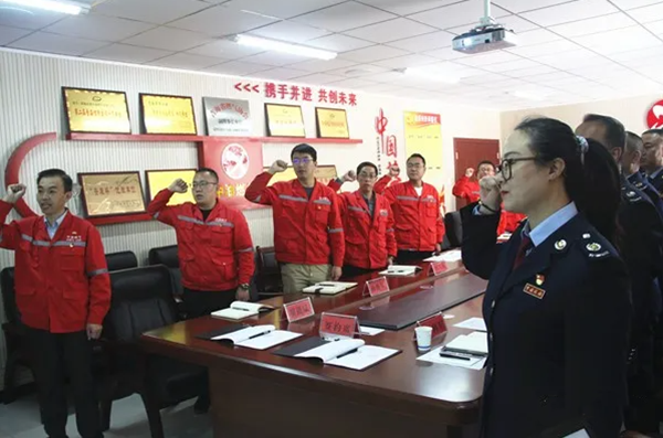 在簽約儀式后,雙方黨員重溫了入黨誓詞,共同觀看了黨史教育片——《筑夢中國》。