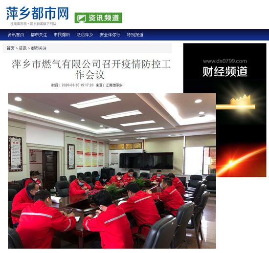 《萍鄉都市報》:萍鄉市燃氣有限公司召開疫情防控工作會議