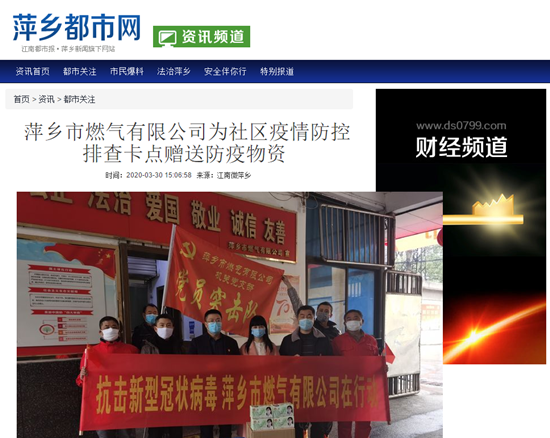《萍鄉都市報》:萍鄉燃氣為社區疫情防控捐贈防疫物資