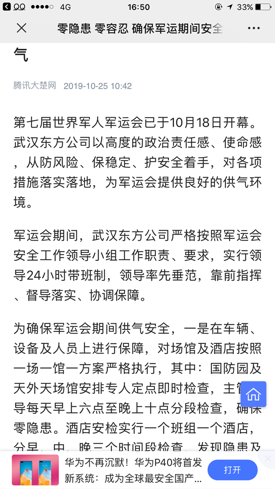 《騰訊大楚網》:零隱患 零容忍 確保軍運會期間安全用氣