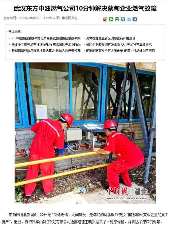 《中新網湖北》武漢東方中油燃氣公司10分鐘解決蔡甸企業燃氣故障