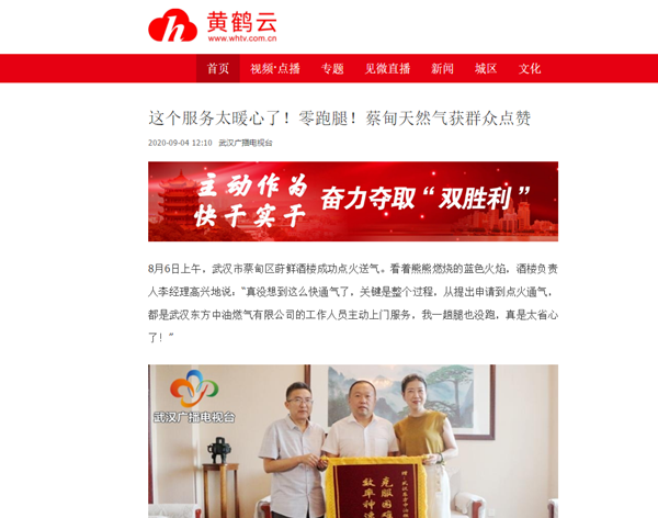 《武漢廣播電視臺》這個服務太?心了!零跑腿!蔡甸天然氣獲群眾點贊