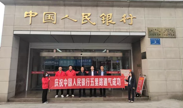 經(jīng)過(guò)一年的緊張施工建設(shè),11月1日,興化中油燃?xì)庥邢薰境晒橹袊?guó)人民銀行五里路支行通氣,本區(qū)域從此結(jié)束以煤氣作為過(guò)渡氣源的歷史、首次邁入天然氣時(shí)代。