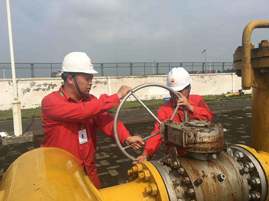 鮮紅的工作服被汗水濕透,干了又濕,濕了又干,臉上的汗水流淌著,在下巴上匯成水滴滴落在滾燙的地面上,瞬間便消失的無影無蹤。面對如此高溫環(huán)境,郭園門站及時調(diào)整人員結(jié)構(gòu),送來降暑清涼飲料,購買預(yù)防中暑必備藥品,確保人員及設(shè)備安全。