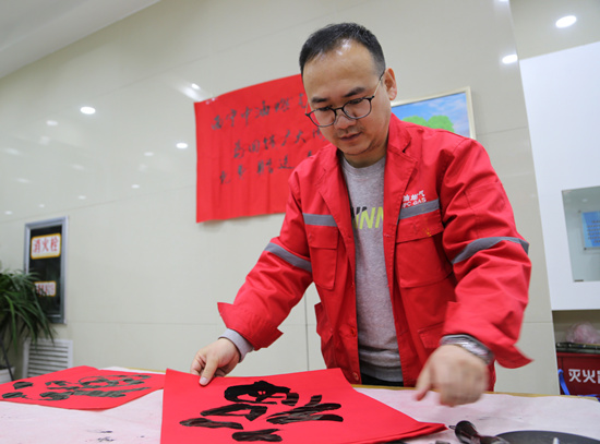 年年送春聯(lián),歲歲道祝福。每年為天然氣用戶書寫春聯(lián),是西寧公司的“傳統(tǒng)節(jié)目”之一,也是公眾服務企業(yè)文化實力的一種體現(xiàn)。因為平時注重文化建設,公司成立以來多次通過舉辦書畫攝影比賽,聘請書畫家上門教學指導等方式,不斷激勵和促進員工中的書畫愛好者藝術水平上臺階、提檔次。每年為用戶書寫春聯(lián),基本以書法水平較高的員工為主,只有在員工實在抽調不出來時,才臨時邀請公司以外的書法家助陣。