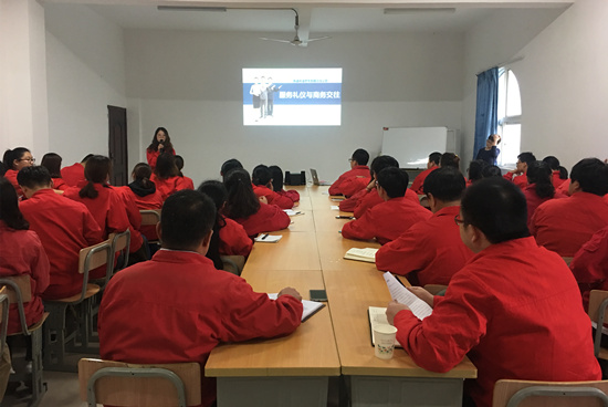 培訓(xùn)會(huì)上,顧老師通過理論知識(shí)和實(shí)際訓(xùn)練相結(jié)合,詳細(xì)講解了儀容儀表、面部表情、文明用語、穿著搭配、待人接物等服務(wù)禮儀中的文明舉止規(guī)范。并著重介紹了前臺(tái)人員的服務(wù)禮儀、溝通技巧、如何處理突發(fā)事件等等。讓大家對(duì)個(gè)人形象、客戶心理、如何有效處理客戶投訴有了更深刻的理解和認(rèn)知。在老師與員工的互動(dòng)環(huán)節(jié)中,現(xiàn)場(chǎng)氣氛十分熱烈,受訓(xùn)人員收益良多。