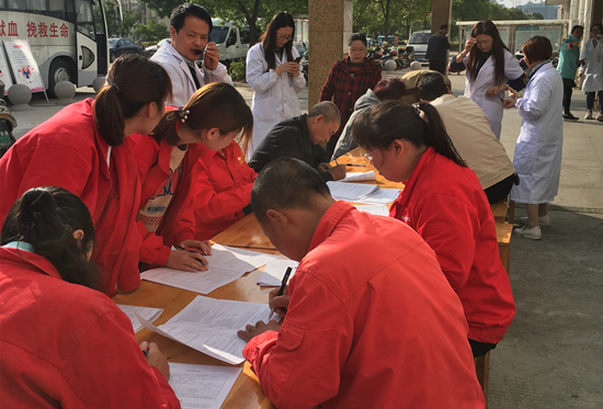 上午7點,南通公司員工就早早地來到了衛(wèi)生服務(wù)站。在工作人員的引導(dǎo)下,參加獻(xiàn)血的員工仔細(xì)填寫血站提供的獻(xiàn)血登記表,抽取血液樣本檢查,錄入個人信息,在所有條件均滿足要求的前提下,抽取血液。不管是體檢還是采血,大家都有序地排著隊伍,有說有笑的,一方面是為了減輕獻(xiàn)血前的緊張心理而互相鼓勵,另一方面更是為自己的無償獻(xiàn)血行為感到自豪。