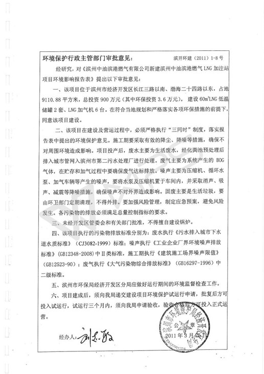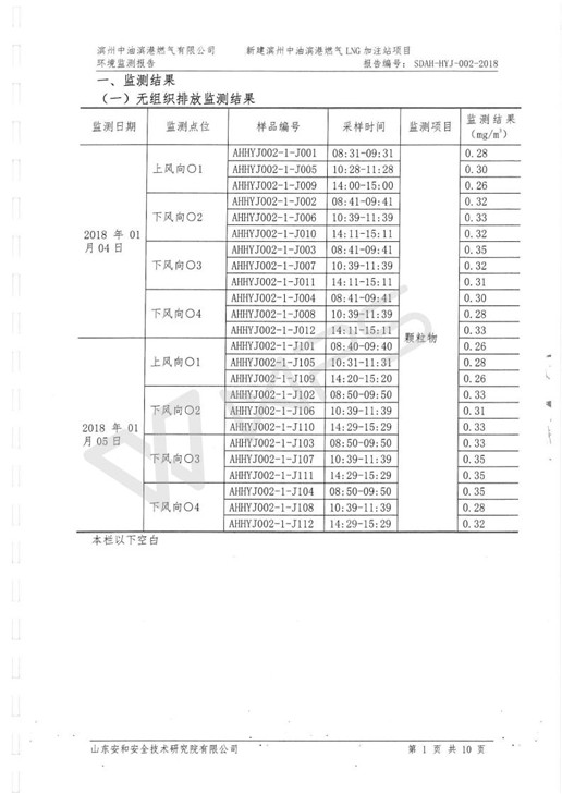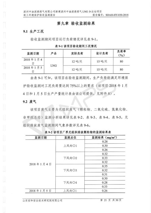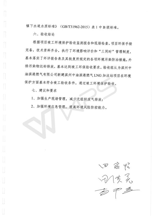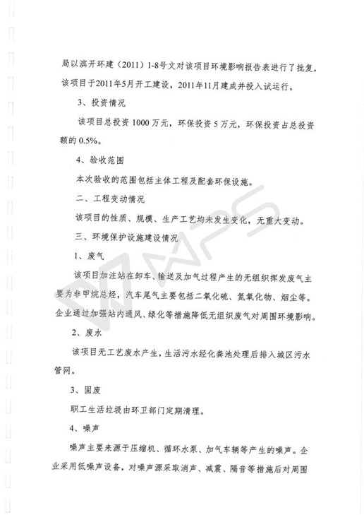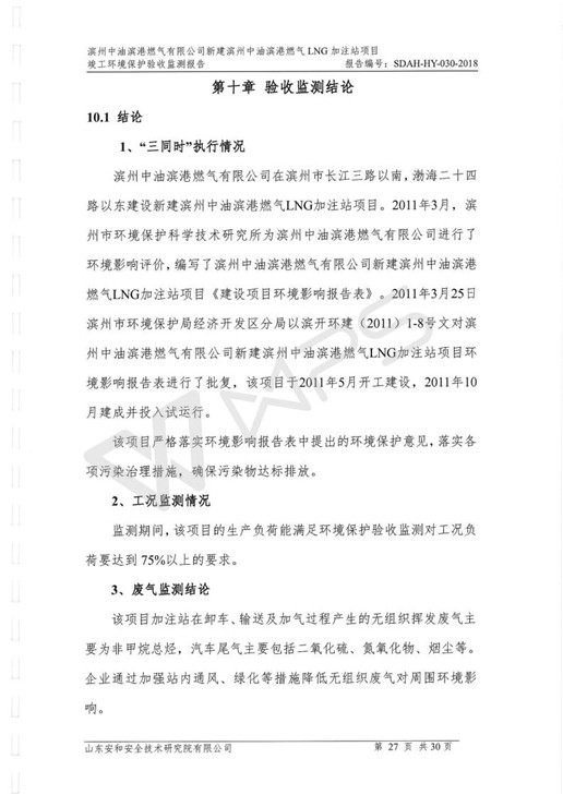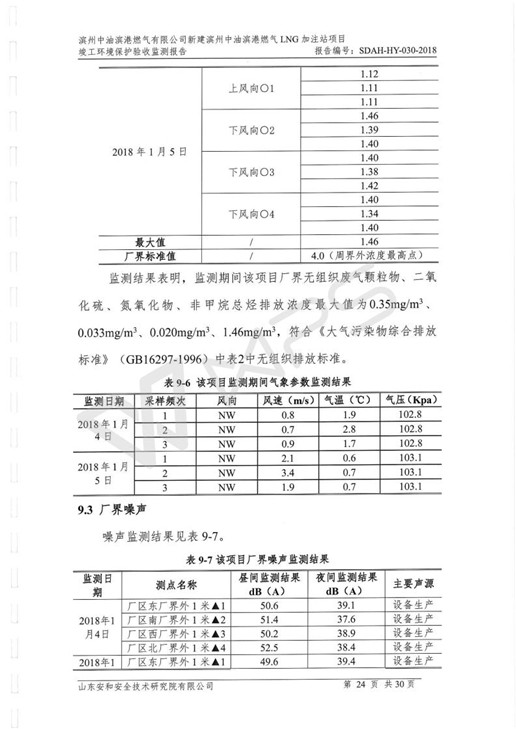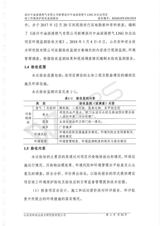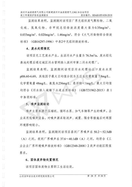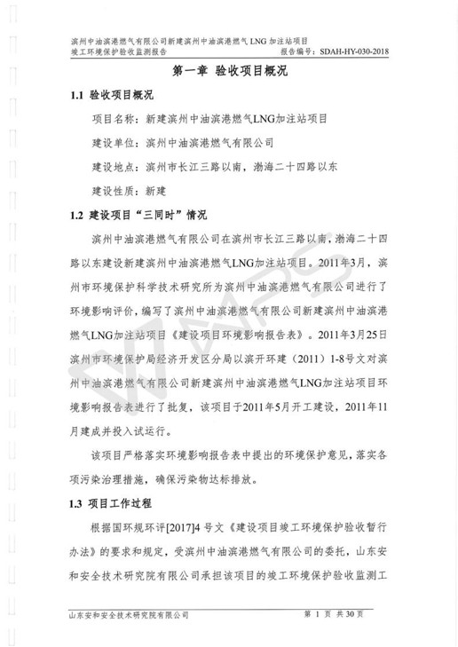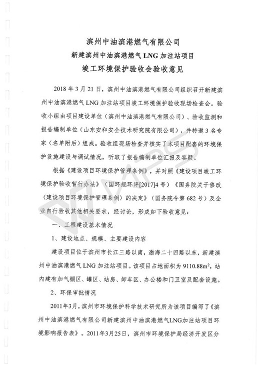 新建濱州中油濱港燃氣LNG加注站項目竣工環境保護驗收監測報告