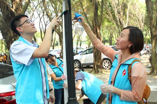 14時(shí),公園內(nèi)游人如織,行動(dòng)正式開始。大家?guī)闲∷啊⒛ú肌⒐蔚兜裙ぞ撸中〗M包干到人,以飽滿的熱情投入到清除工作中。經(jīng)過兩個(gè)多小時(shí)的“奮戰(zhàn)”,共清理各類垃圾五大塑料袋。看著用汗水換來的“戰(zhàn)利品”,大家都露出了幸福的笑容。活動(dòng)結(jié)束后,大家向珠海全體市民發(fā)起倡議,從節(jié)約電、水、紙張,到廢舊電池回收和綠色出行等七個(gè)方面,承諾保護(hù)環(huán)境,低碳生活,從自已做起,讓珠海藍(lán)天更潔凈,大海更清澈。