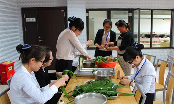 新沂中油公司食堂內不時傳來陣陣笑聲,浸泡好的糯米、新鮮的蘆葉,還有一雙雙躍躍欲試的手,沒錯,這里正在舉行“包粽子,慶端午”活動。許多員工都是第一次包粽子,充滿了新奇,有經驗的手把手的教沒經驗的。可包粽子可是個技術活兒,不是一朝一夕能學會的,可想而知,包出來的粽子千奇百狀,形狀各異,甚至有的糯米都灑出來了,估計下水后會變成蘆葉粥的。